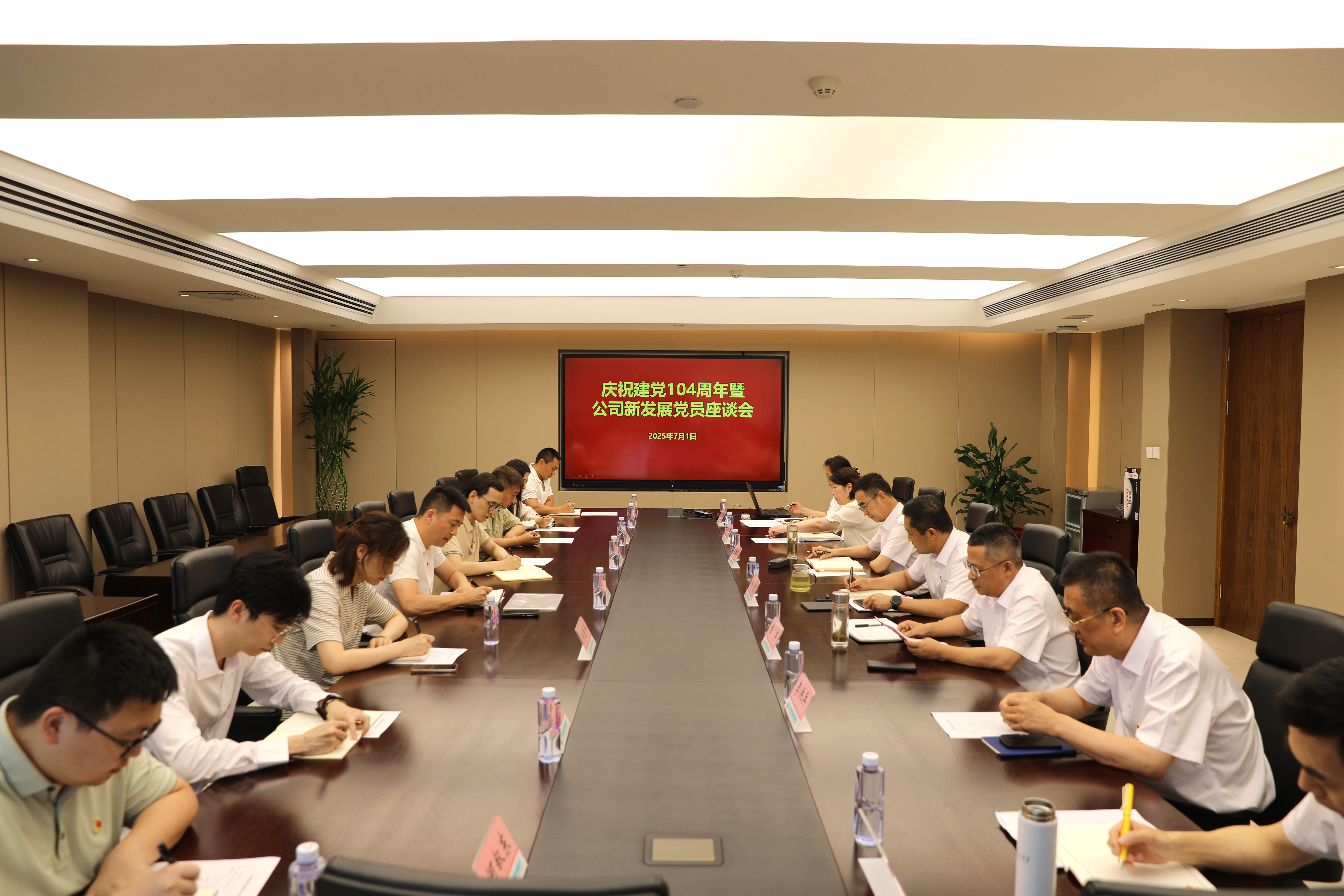 为庆祝建党104周年,进一步加强公司党员队伍建设,激励广大党员坚定理想信念、发挥先锋模范作用,7月1日,公司召开庆祝建党104周年暨新发展党员座谈会。公司党委书记、总经理邹哲,纪委书记毛雅清,副总经理李洪兵,公司组织、人力部门负责人和公司2024年新发展的预备党员出席会议。会议由公司党委副书记、工会主席程丰主持。