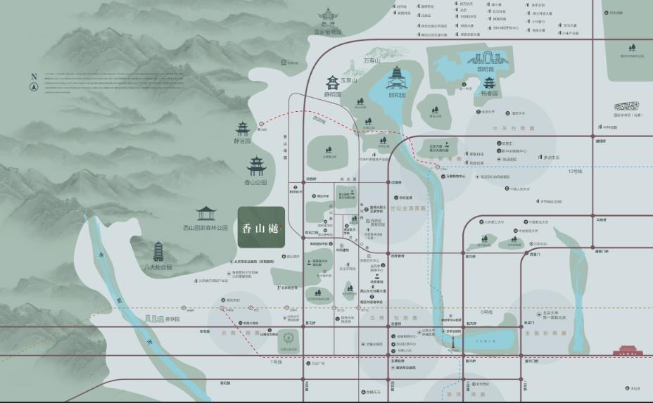 项目特点:项目地处海淀区三山五园腹地的香山脚下,产品规划为全四层低密平墅,户型面积185-270㎡,容积率仅1.05。香山樾项目以三山五园、300年古树及周边自然生态环境为基底,依循紫禁皇城的中轴布局,在香山脚下匠著隐于盛世的当代宋韵家府。