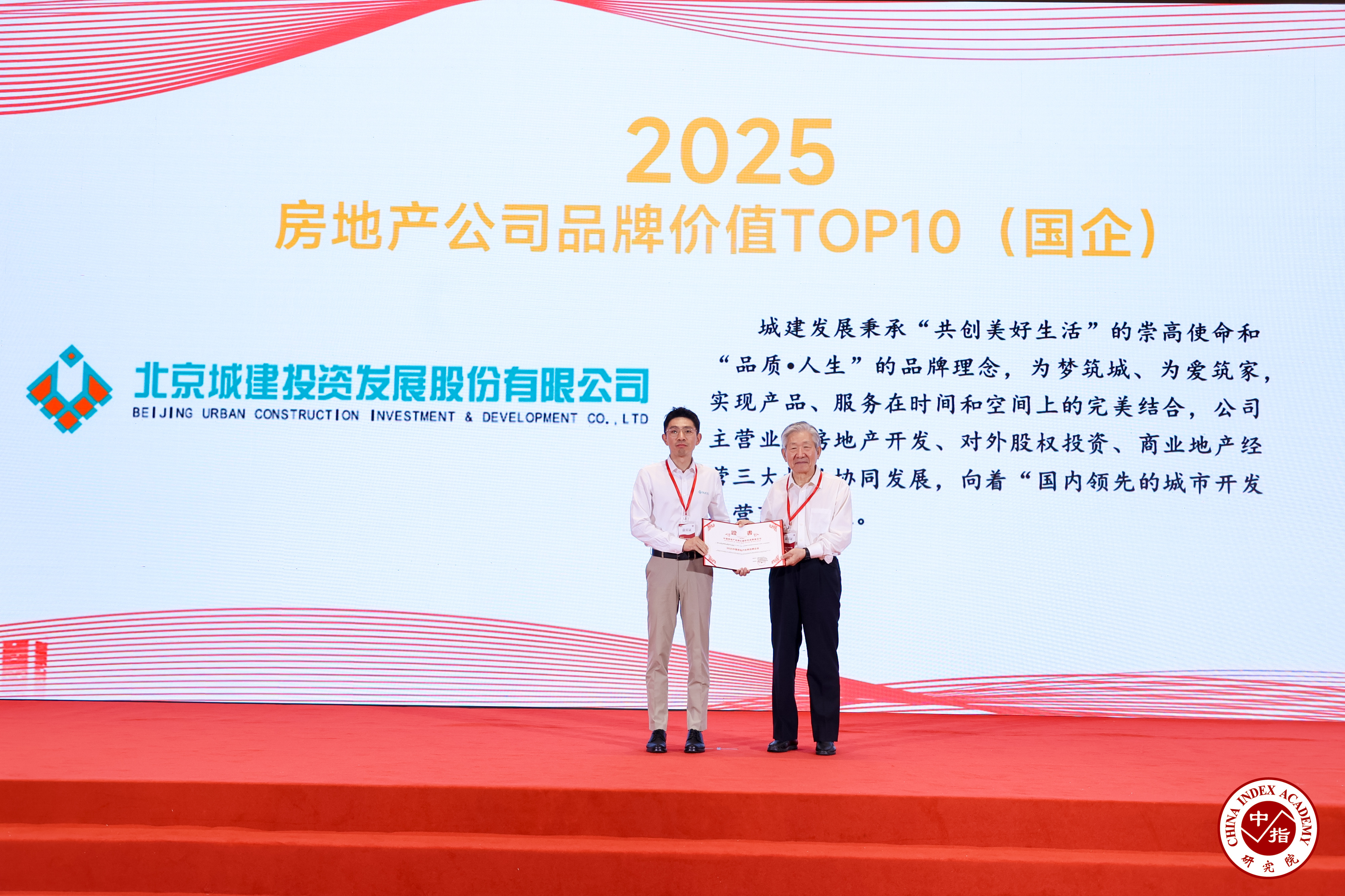 9月11日,2025中国房地产品牌价值研究成果发布会暨第二十二届中国房地产品牌发展高峰论坛在北京召开。公司荣膺“2025中国房地产公司品牌价值TOP10(国企)”荣誉,公司开发建设的北京城建·国誉颂项目,凭借卓越的产品力与前瞻性设计,成功荣获“2025年人居梦想好房子(北京市)”称号。